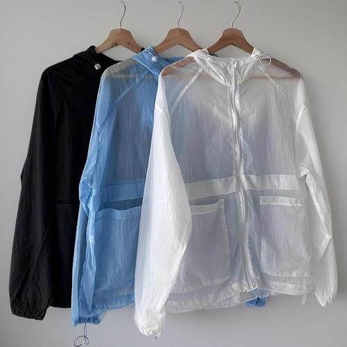[미라클세븐]여성 여름 바캉스 시스루 후드 오버사이즈 바람막이 재킷