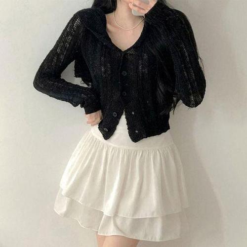 [셀러허브_여성트랜드패션]Rly 여성 블랙 시스루 가디건 크롭 니트 여름옷