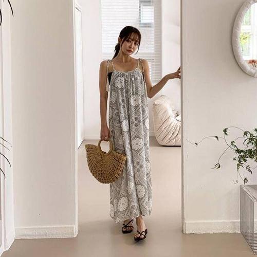 여성 여름 여행 휴양지 끈나시 롱 원피스