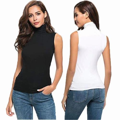 [lisusut] 모크넥 티셔츠 여성 민소매 컷쏘 슬림형 자외선 차단 UV 케어 이너 겹쳐입은 목폴라티 여름 슬림 무지 큰 사이즈 신축성 멋쟁이 톱 하복 캐주얼 오피스 통근
