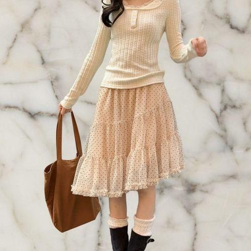 [신상오픈런]여성용 봄 여름 도트 패턴 프릴 미니 스커트