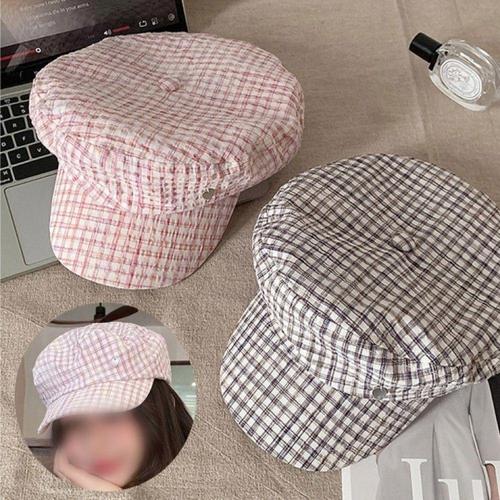 여성용 체크 베레모 헌팅캡 여름 모자 WFMBKJ7