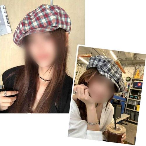 빈티지 브레드 체크 베레모 캡 모자 여성 여름모자 WFJBK4W