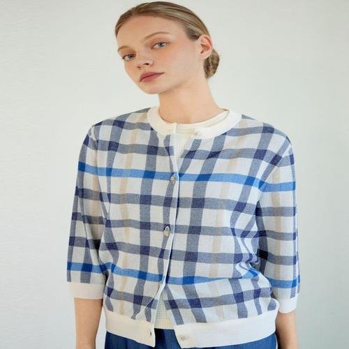 닥스 여성 베이지 체크 면혼방 7부소매 여름 가디건 (DLSW5B491IV)