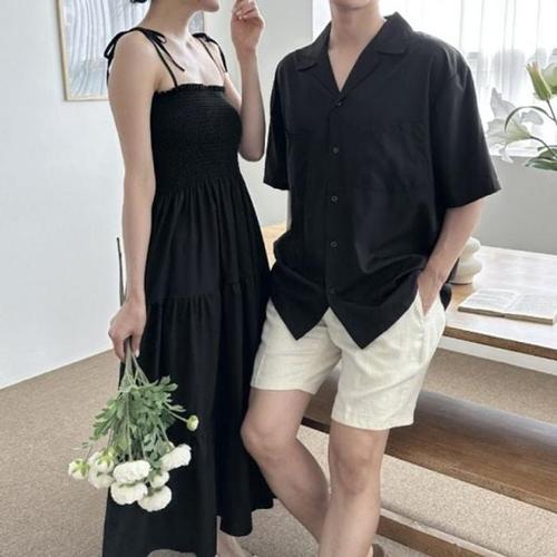 커플 휴양지룩 신혼여행 비치웨어 바캉스 여름 시밀러룩 비치웨어 원피스 셔츠 세트