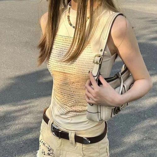나시탑 여름문양 끈 그래픽 티셔츠 나시티 여성반팔티