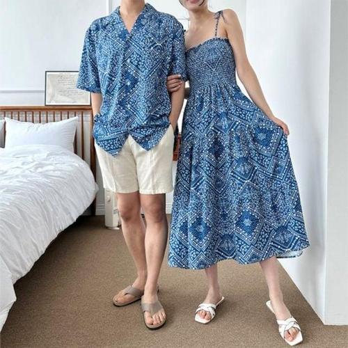 [엄지척]남녀 웨이브 커플룩 비치웨어 썸머셔츠 스모크원피스_19913176_667501