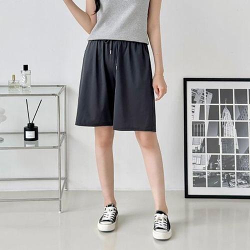 여름여성바지 심플 무지 쿨 5부 반바지 허리밴딩 여름 데일리팬츠