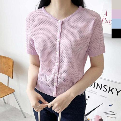 [모노무드]모노무드 여름 반팔 니트 가디건 라운드넥 펀칭 여자 데일리룩