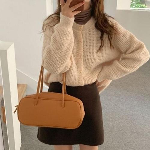 해피유통 여성용 비비드 컬러 버튼 라운드넥 가디건 트렌디 니트웨어zjm