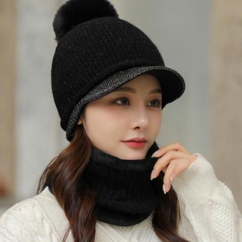 LnD 여성 겨울 니트 방울 모자 귀달이 챙모자 따뜻한 방한모 캡모자 골프 볼캡 귀마개