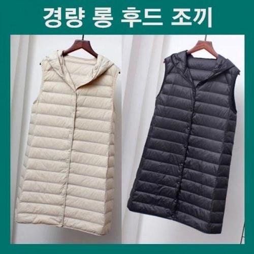 후드 롱 패딩조끼 여자 경량 베스트 오리털 덕다운 오리털