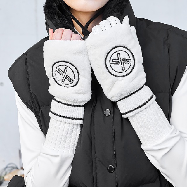 데상트골프장갑 KQF DP42WFGLO2-IVYG 여성 퍼 방한 양손 장갑 / Ivory