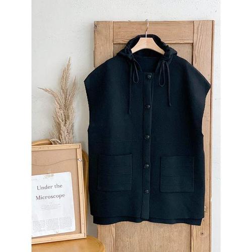 [샵앤][샵앤] 여성 빅포켓 단추여밈 후드 롱 니트 조끼 DGB-WVS-4781-블랙