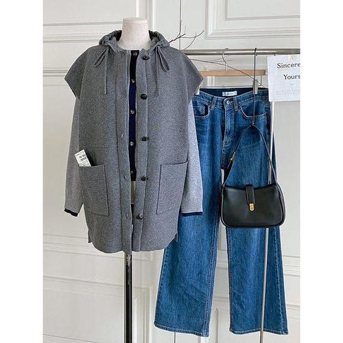 [샵앤][샵앤] 여성 빅포켓 단추여밈 후드 롱 니트 조끼 DGB-WVS-4781-그레이