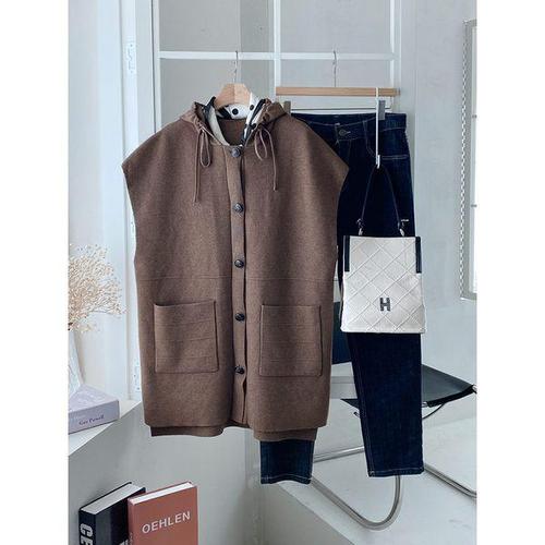 [샵앤][샵앤] 여성 빅포켓 단추여밈 후드 롱 니트 조끼 DGB-WVS-4781-브라운