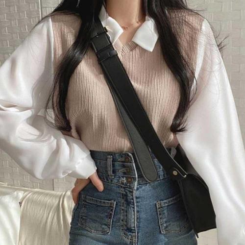 오피스룩 베이직 레이어드 니트 블라우스 셔츠