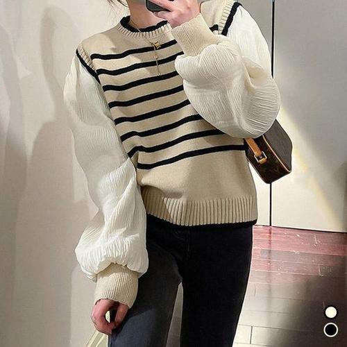 [패션시그널] 7부 쉬폰슬리브 레이어드니트 블라우스 FE798C