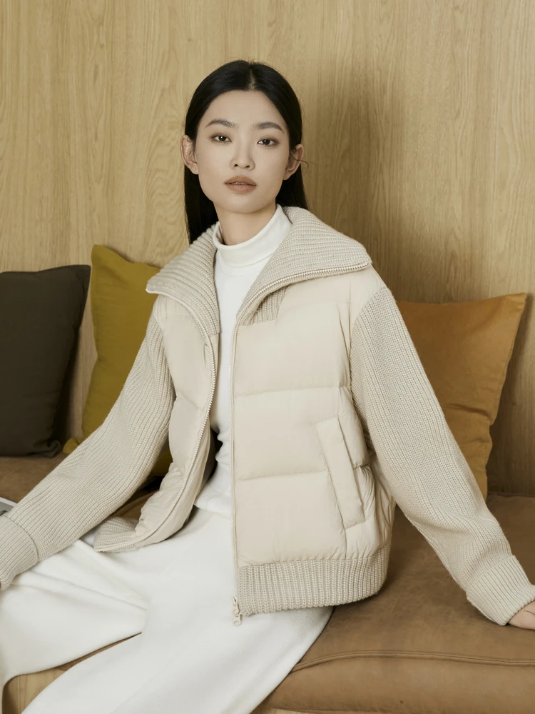 2025년 봄/가을 신상 여성용 다운 자켓 심플 무지 캐주얼 니트 스탠드 카라 루즈핏
