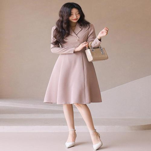 [스타일온미][스타일온미] 로세나 랩 디자인 테일러드 카라 A라인 플레어 원피스