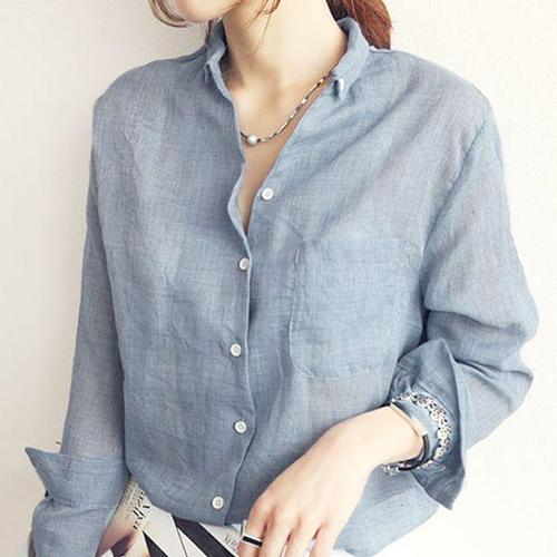[에이치플러스몰]여자 긴팔 셔츠 오버핏 린넨 블라우스 캐주얼 남방