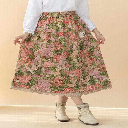 [디얼마미][디얼마미] 꽃나염 레이스 린넨 스커트 /마담 미시 중년 여성 빅사이즈 40대 50대