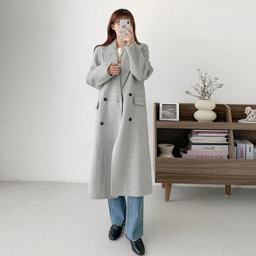 러블리감성 / 가을패션 핸드메이드 더블 울 모직 롱 코트