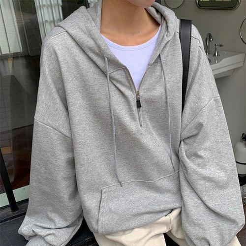 여자 반집업 후드티 베이직 지퍼후디 오버핏후드 무지