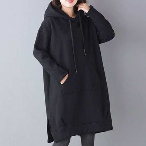 [유야]캐주얼 면 반집업 무지 후드티 긴팔티 -TS0516H- 빅사이즈 루즈핏 여성 봄
