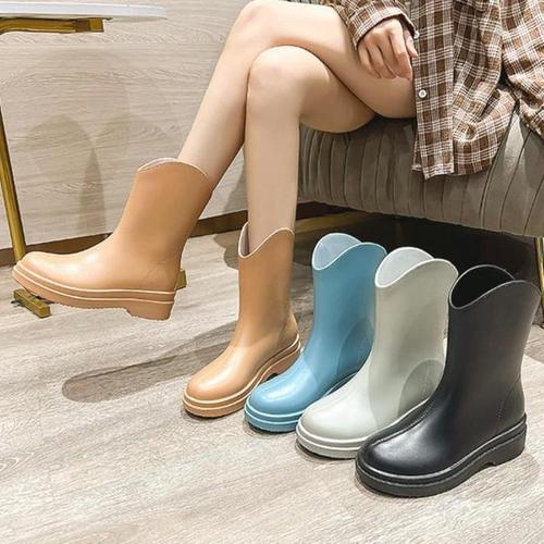 Modern Fashion 심플 여성 미들 장화 미끄럼방지 레인부츠