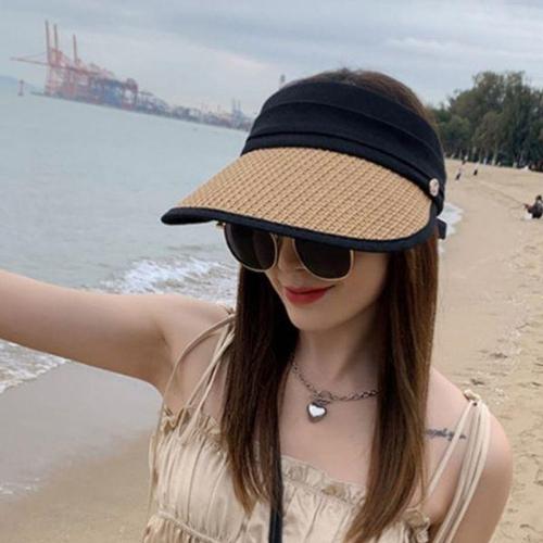 [에이치플러스몰]여성선캡 휴가 바닷가 밀짚 모자 진베이지