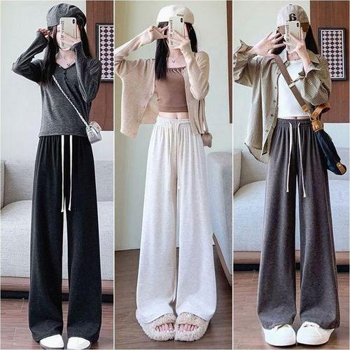 [에이치플러스몰]여성바지 와이드팬츠 밴딩 가을겨울 기모바지 따뜻한바지