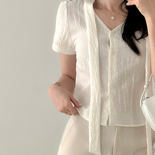 더클립 / 라이프 브이넥 타이 반팔 블라우스