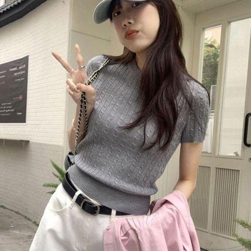 샵앤) 여성 V넥 여름 루즈 데일리 반팔 니트 티셔츠 DGB-WKN-4557-그레이