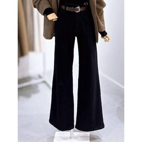 엘케이트 여자 기모 청바지 와이드핏 블랙진 겨울 바지 LPP029