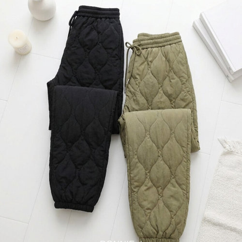 따뜻한 여성 겨울 와이드 패딩바지 두꺼운 시보리 조거 팬츠 방풍 보온 솜바지