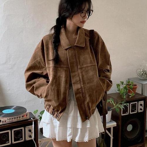[굿쇼핑몰_의류]루즈핏 페미닌 봄 가을 스웨이드 집업 숏 자켓