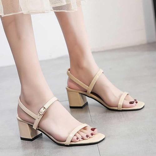 심플스타일 발목스트랩 샌들힐 미들굽 데일리샌들