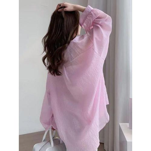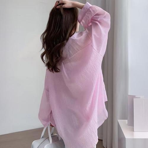 [55~88사이즈]데일리 여성 스트라이프 셔츠 긴팔 남방 카라셔츠 빅사이즈 루즈핏 오버핏 하객룩 피크닉 여름셔츠 자외선 간절기 77사이즈 88사이즈