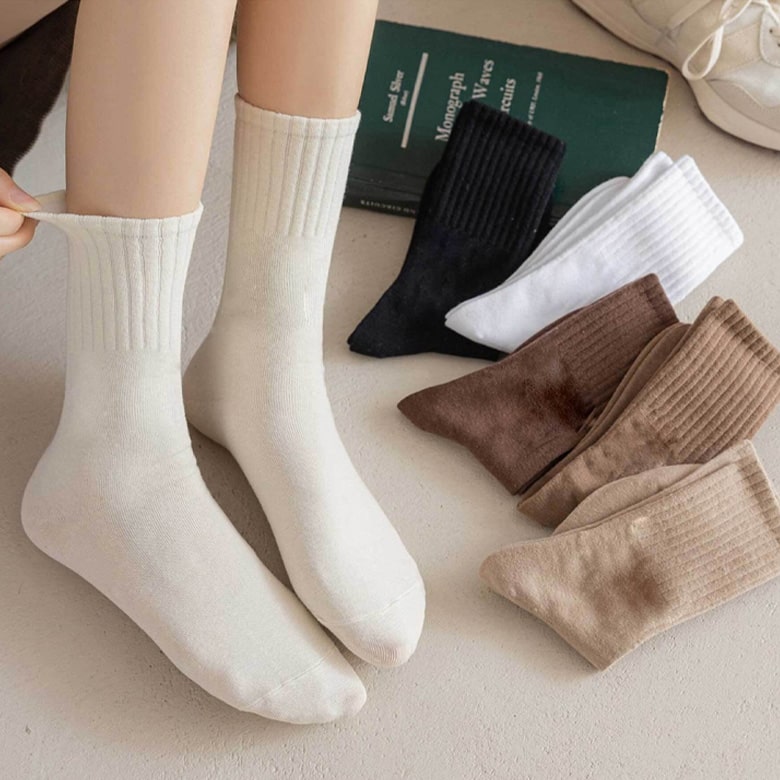비바슈슈 여성용 쫀쫀하고 목이 긴 무지 중목 양말 8켤레