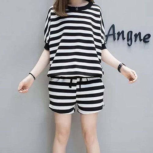[모노무드]모노무드 여름 블랙 스트라이프 트레이닝셋업 반팔 반바지 여성