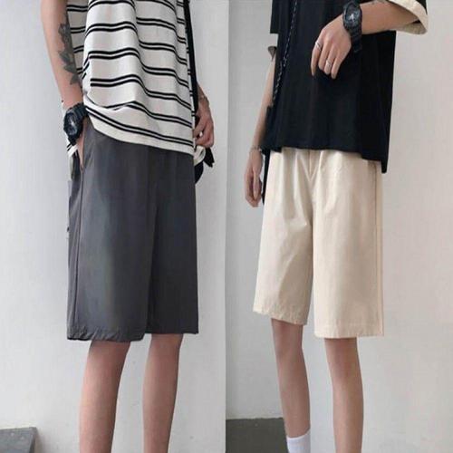남성용 와이드핏 시원한 7부 면 슬랙스 트레이닝 팬츠 쿨 반바지 WFLLZIM
