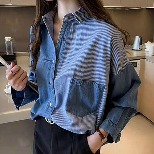 여자블라우스 여성 루즈핏 긴팔 청 데님 셔츠 남방 진청