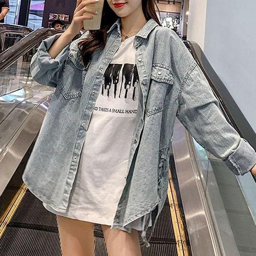 [에이치플러스몰]여성 루즈핏 데님 청 남방 봄 가을 긴팔 여자 셔츠