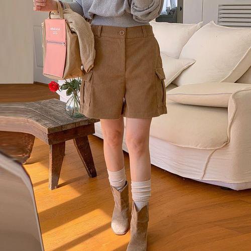 [유야]뒷밴딩 골덴 카고 반바지 코듀로이 팬츠 -PN0651H- 여성 가을 겨울