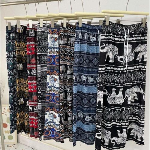 1+1 벨라도나 여성 여름까지 입는 패턴쿨 와이드팬츠 배기팬츠 이지 홈웨어 엄마바지 Bon-2676s