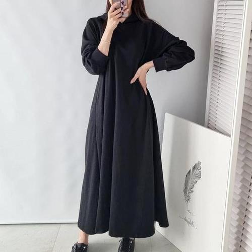 나바바 / NO944 여성 깔끔 베이직 긴팔 롱 후드 원피스