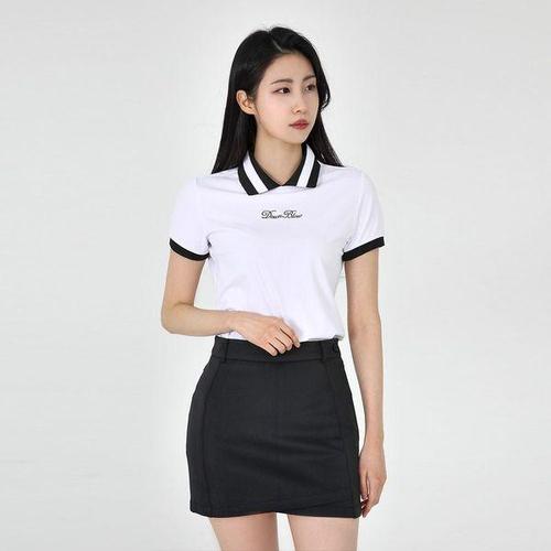 [에이치플러스몰]여자 골프웨어 배색라인 카라 반팔 셔츠