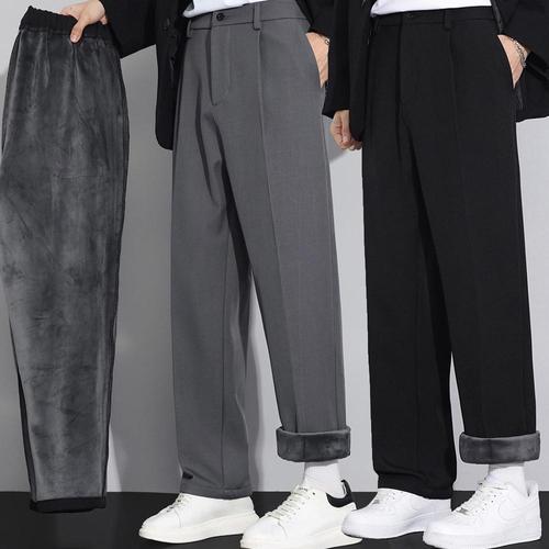 심플 베이직 루즈핏 융털기모 보온 안감 슬랙스 바지 모던 트렌디 스판 겨울 정장 팬츠