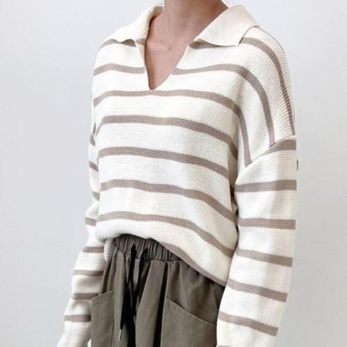 [엄지척]여자 브이넥 니트 카라티 줄무늬 오버핏 박시한_19678075_667501